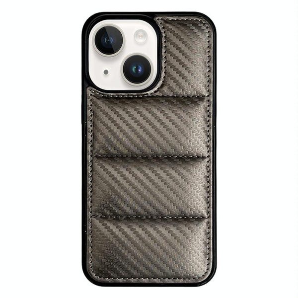 For iPhone 13 Carbon Fiber Texture Down Jacket Phone Case(Grey)