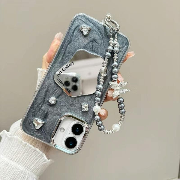 For iPhone 13 Cream Mirror Bracelet Chain TPU Phone Case(Beige)