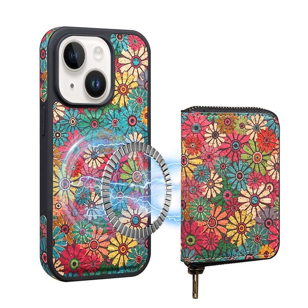 For iPhone 13 Denior D23 MagSafe Detachable Zipper Wallet Holder Phone Case(Green)