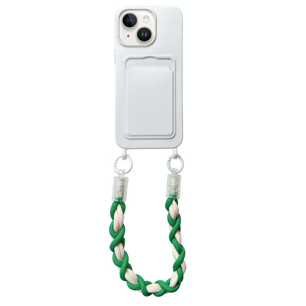 For iPhone 13 Dopamine Card Slot Phone Case with Lanyard(White)