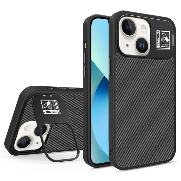 For iPhone 13 Folding Holder Carbon Fiber MagSafe Phone Case(Black)