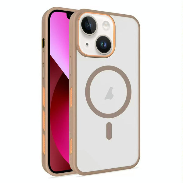 For iPhone 13 Frosted Translucent Side Ice Fog Cooling MagSafe Phone Case(Khaki)