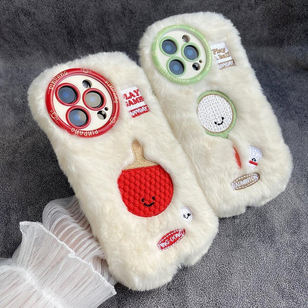 For iPhone 13 Fun Sports Plush Silicone Phone Case(Table Tennis)