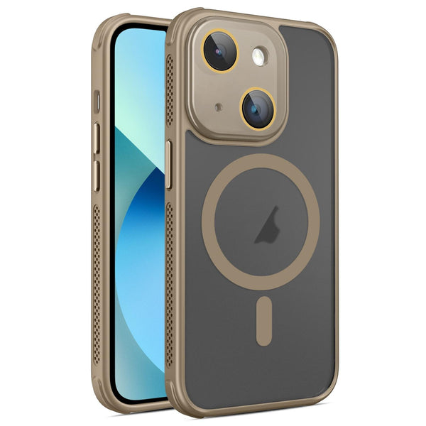 For iPhone 13 Hardware Side Cooling Skin Feel Frosted MagSafe Magnetic Phone Case with Lens Film(Gold)