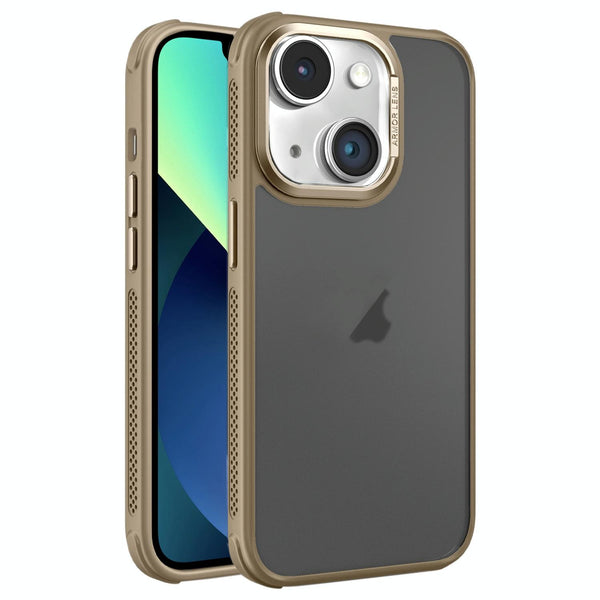 For iPhone 13 Hardware Side Cooling Skin Feel Frosted Metal Lens Frame Phone Case(Gold)