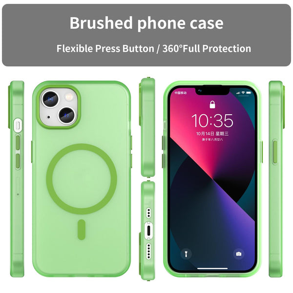For iPhone 13 MagSafe Frosted Translucent TPU + PC Full Coverage Phone Case(Green)