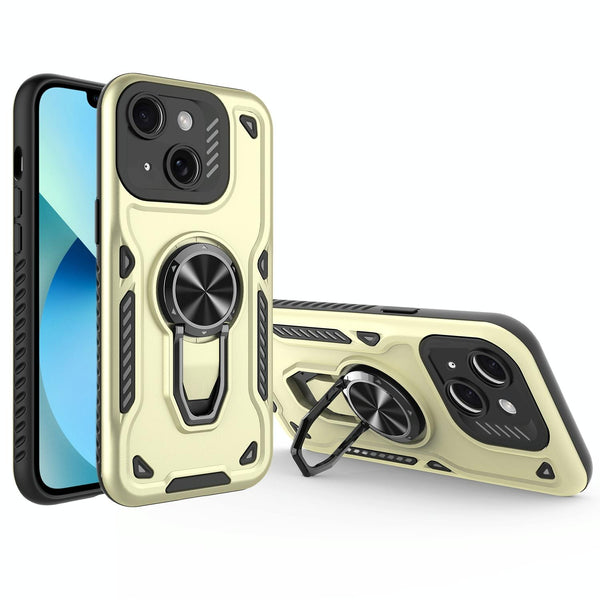 For iPhone 13 Metal Rotating Bracket TPU + PC Magnetic Phone Case(Beige)