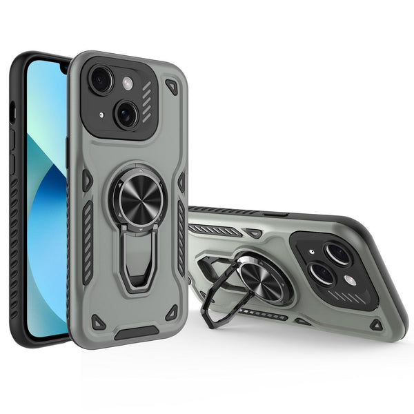 For iPhone 13 Metal Rotating Bracket TPU + PC Magnetic Phone Case(Carbon Grey)
