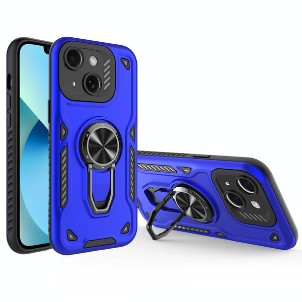 For iPhone 13 Metal Rotating Bracket TPU + PC Magnetic Phone Case(Navy Blue)