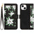 For iPhone 13 mini Floral Pattern Leather Phone Case with Lanyard(Black)