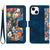 For iPhone 13 mini Floral Pattern Leather Phone Case with Lanyard(Dark Blue)