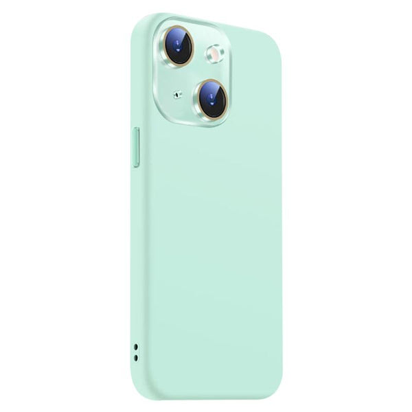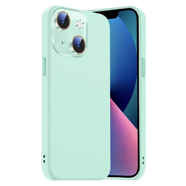For iPhone 13 Nano Lens Cover Liquid Silicone Phone Case(Light Cyan)