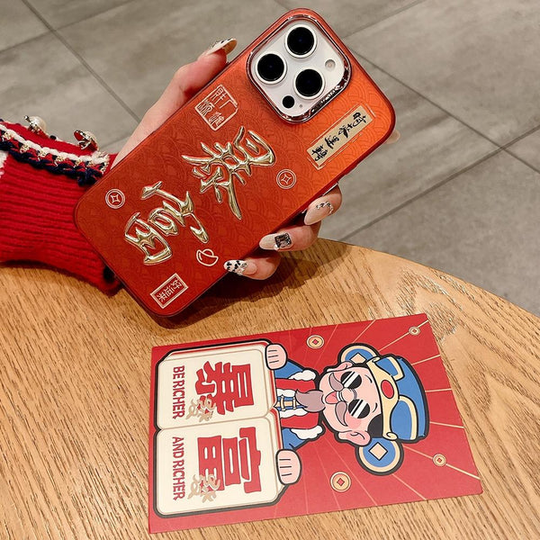 For iPhone 13 New Year Design 3D Gold Stamping IMD Phone Case(Get Rich)