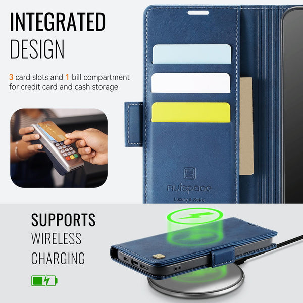 For iPhone 13 Pro AutSpace A11 Side Buckle MagSafe Magnetic RFID Phone Leather Case(Blue)