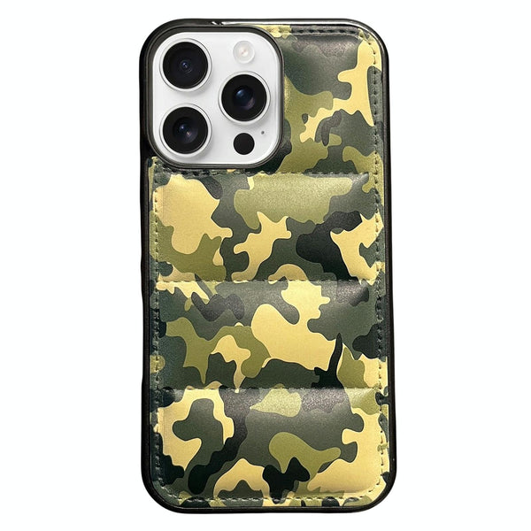 For iPhone 13 Pro Camouflage Eiderdown Airbag Phone Case(Green-A)