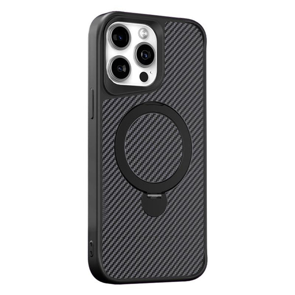 For iPhone 13 Pro Carbon Fiber Texture 360 MagSafe Holder Phone Case(Black)
