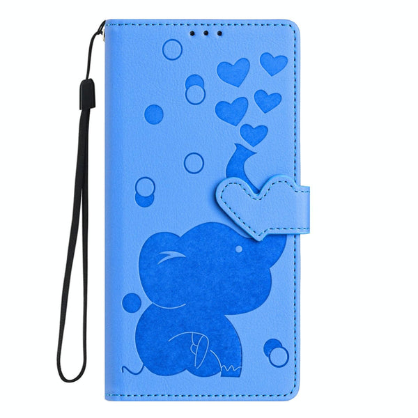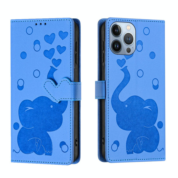 For iPhone 13 Pro Cartoon Elephant Embossed Leather Phone Case(Blue)