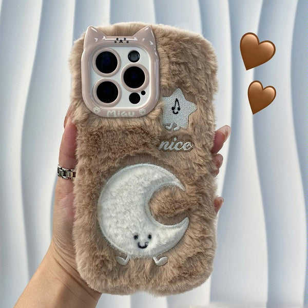 For iPhone 13 Pro Cute Embroidery Plush Silicone Phone Case(Moon)