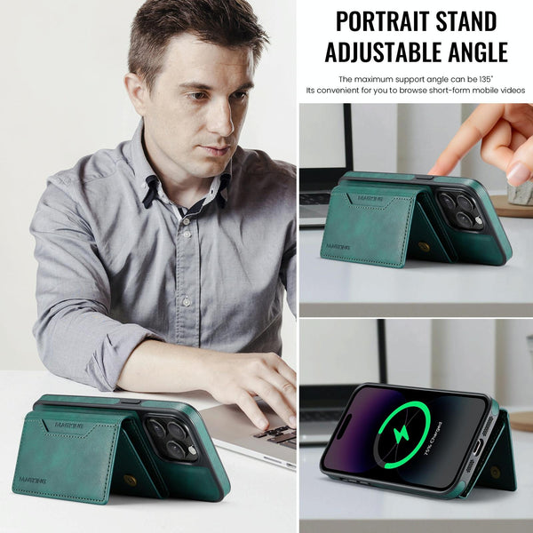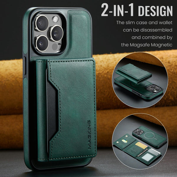 For iPhone 13 Pro DG.MING MAGKING-K2 Series MagSafe RFID Card Bag Detachable Phone Case(Green)