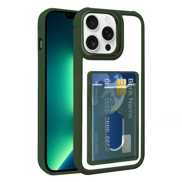 For iPhone 13 Pro Electroplated Card Bag Acrylic Hybrid TPU Phone Case(Green)
