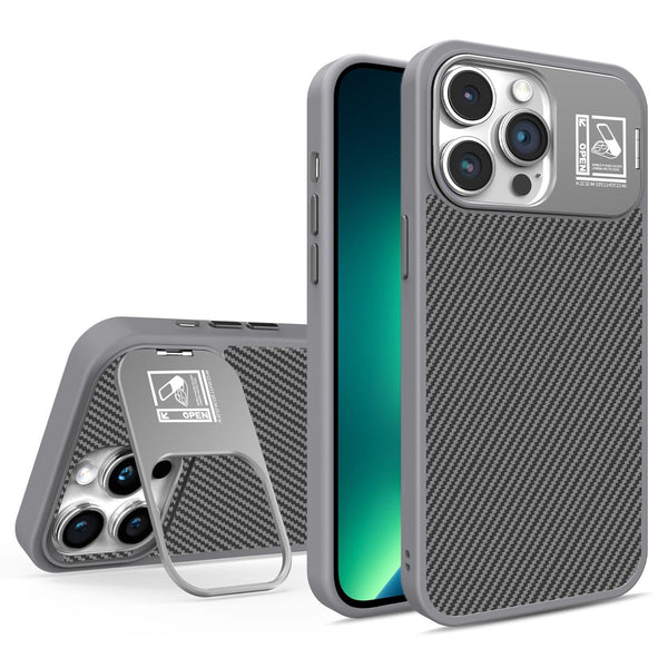 For iPhone 13 Pro Folding Holder Carbon Fiber MagSafe Phone Case(Grey)