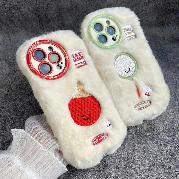 For iPhone 13 Pro Fun Sports Plush Silicone Phone Case(Table Tennis)