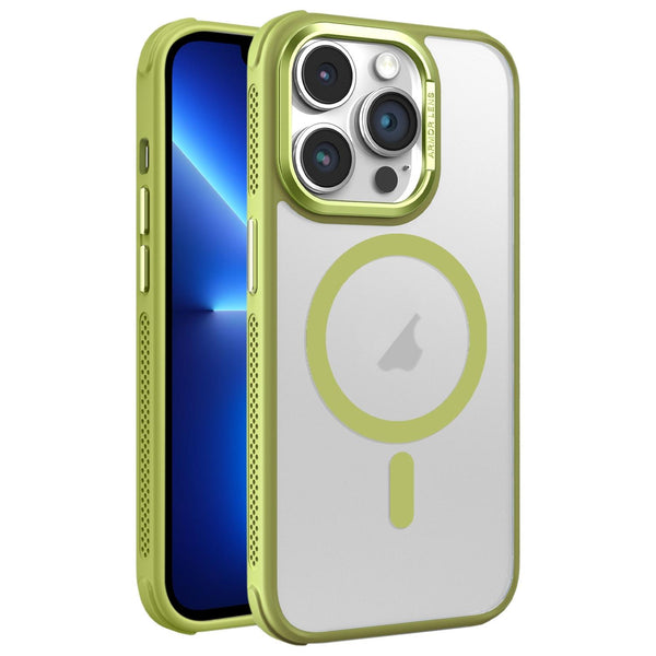 For iPhone 13 Pro Hardware Side Cooling Skin Feel Frosted Metal Lens Frame MagSafe Phone Case(Green)
