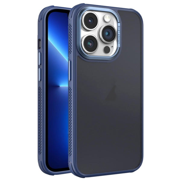 For iPhone 13 Pro Hardware Side Cooling Skin Feel Frosted Metal Lens Frame Phone Case(Blue)