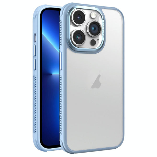 For iPhone 13 Pro Hardware Side Cooling Skin Feel Frosted Metal Lens Frame Phone Case(Sky Blue)