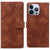 For iPhone 13 Pro Lace Floral Embossed Magnetic Buckle Leather Phone Case(Brown)