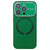 For iPhone 13 Pro Large Window Acrylic Glass Lens MagSafe Silicone Phone Case(Dark Green)