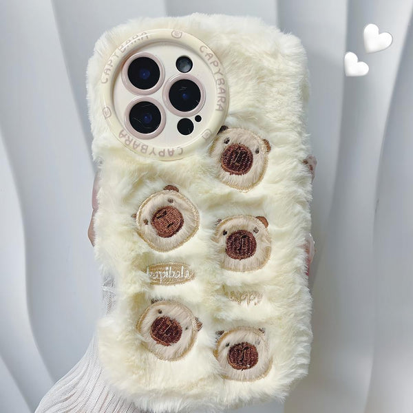 For iPhone 13 Pro Max Bear Plush Silicone Phone Case(Beige)