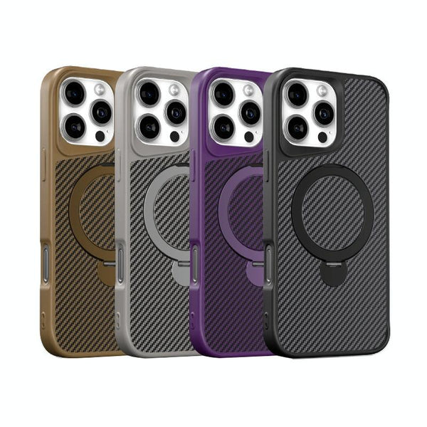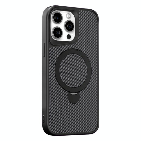 For iPhone 13 Pro Max Carbon Fiber Texture 360 MagSafe Holder Phone Case(Black)