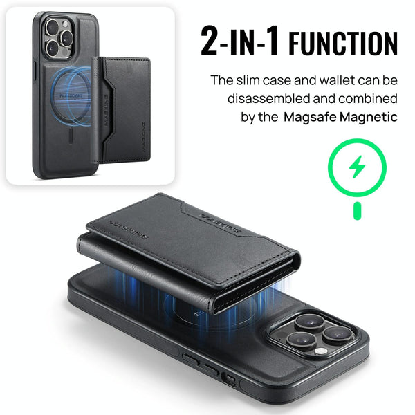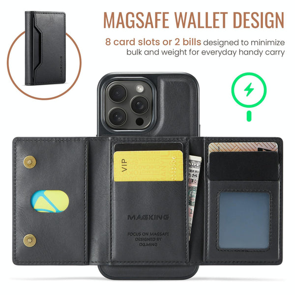 For iPhone 13 Pro Max DG.MING MAGKING-K2 Series MagSafe RFID Card Bag Detachable Phone Case(Black)