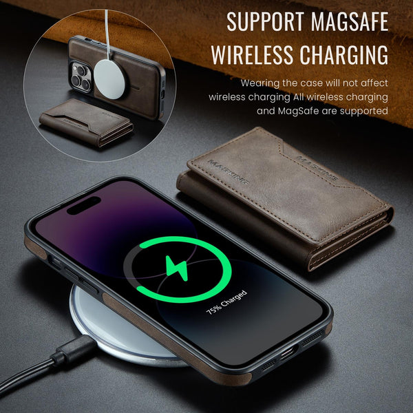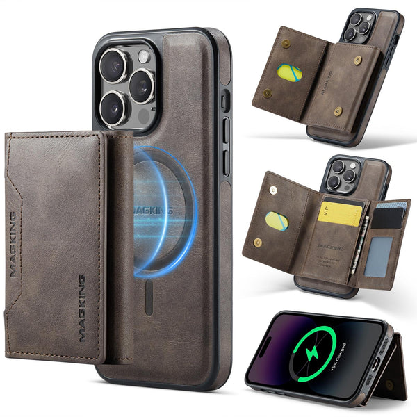 For iPhone 13 Pro Max DG.MING MAGKING-K2 Series MagSafe RFID Card Bag Detachable Phone Case(Coffee)