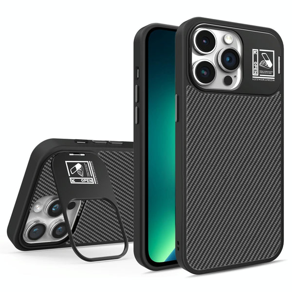 For iPhone 13 Pro Max Folding Holder Carbon Fiber MagSafe Phone Case(Black)