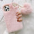 For iPhone 13 Pro Max Gold Diamond Flower Decorated Plush Silicone Phone Case with Pendant(Pink)