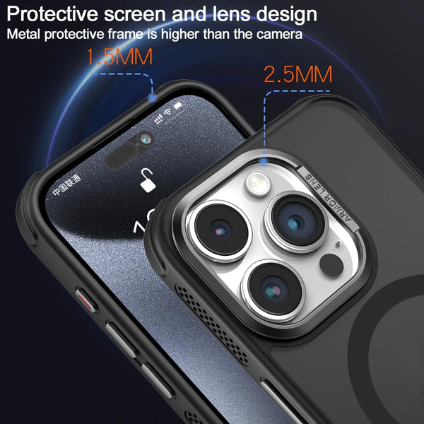 For iPhone 13 Pro Max Hardware Side Cooling Skin Feel Frosted Metal Lens Frame MagSafe Phone Case(Black)