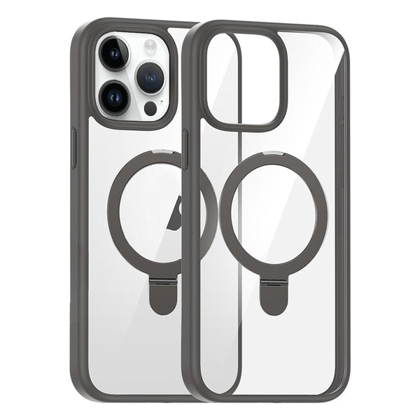 For iPhone 13 Pro Max High Transparency MagSafe Holder Phone Case(Titanium Gray)