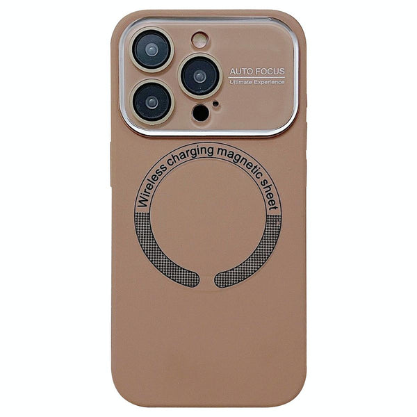 For iPhone 13 Pro Max Large Window Acrylic Glass Lens MagSafe Silicone Phone Case(Coffee)