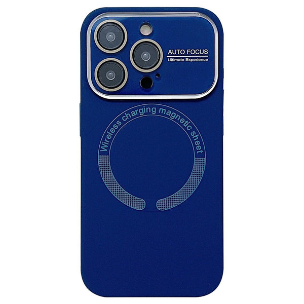 For iPhone 13 Pro Max Large Window Acrylic Glass Lens MagSafe Silicone Phone Case(Navy Blue)