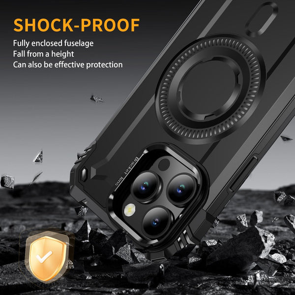 For iPhone 13 Pro Max Lens Holder MagSafe Phone Case(Black)
