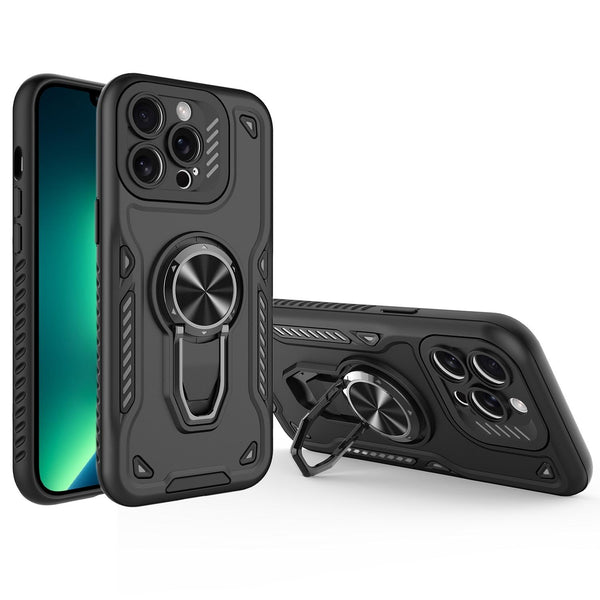 For iPhone 13 Pro Max Metal Rotating Bracket TPU + PC Magnetic Phone Case(Black)