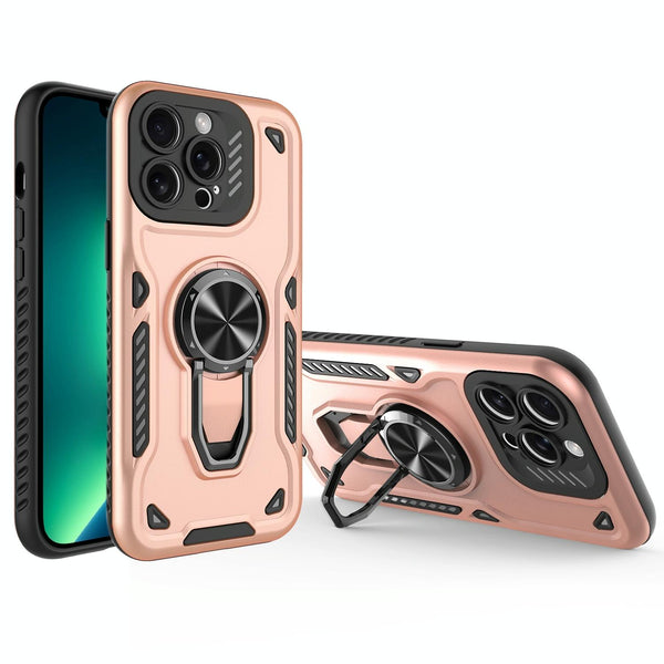 For iPhone 13 Pro Max Metal Rotating Bracket TPU + PC Magnetic Phone Case(Gold)