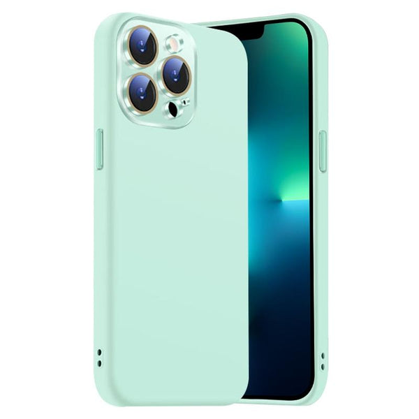 For iPhone 13 Pro Max Nano Lens Cover Liquid Silicone Phone Case(Light Cyan)