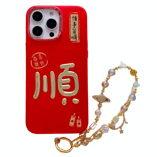 For iPhone 13 Pro Max New Year Design 3D Gold Stamping IMD Phone Case with Crystal Chain(Prosperity)