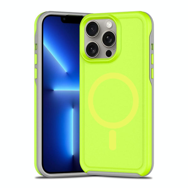 For iPhone 13 Pro Max Shockproof MagSafe Armor PC Hybrid TPU Phone Case(Fluorescent Green+Gray)