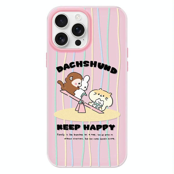 For iPhone 13 Pro Max Skin Feeling Jelly TPU Hybrid PC Phone Case(Seesaw Animal Pink)