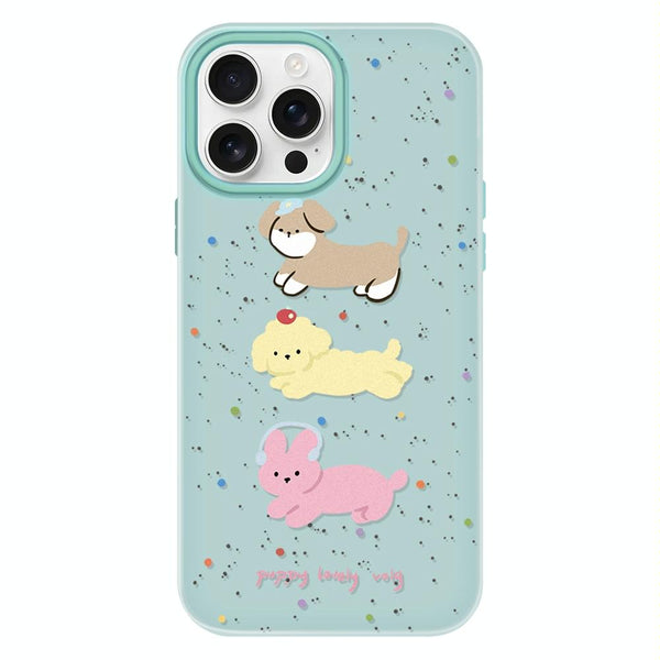 For iPhone 13 Pro Max Skin Feeling Jelly TPU Hybrid PC Phone Case(Three Puppies Light Green)