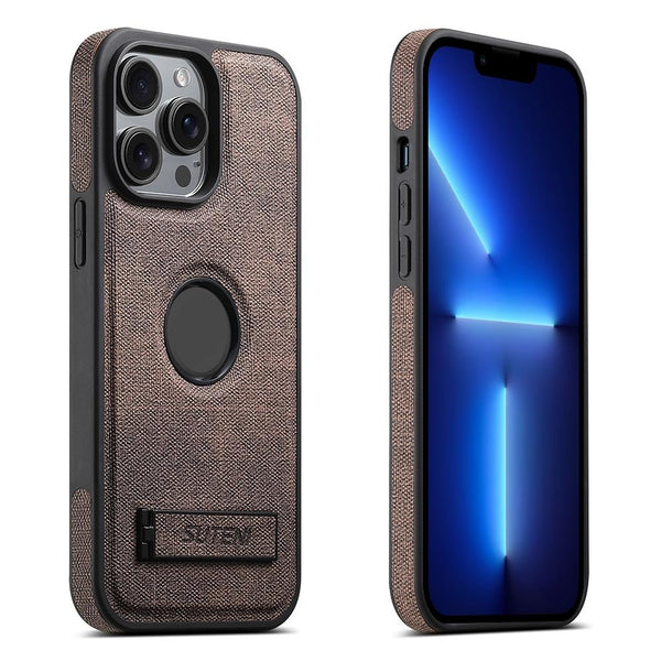 For iPhone 13 Pro Max Suteni G2 Holder Denim Leather Back MagSafe Phone Case(Brown)